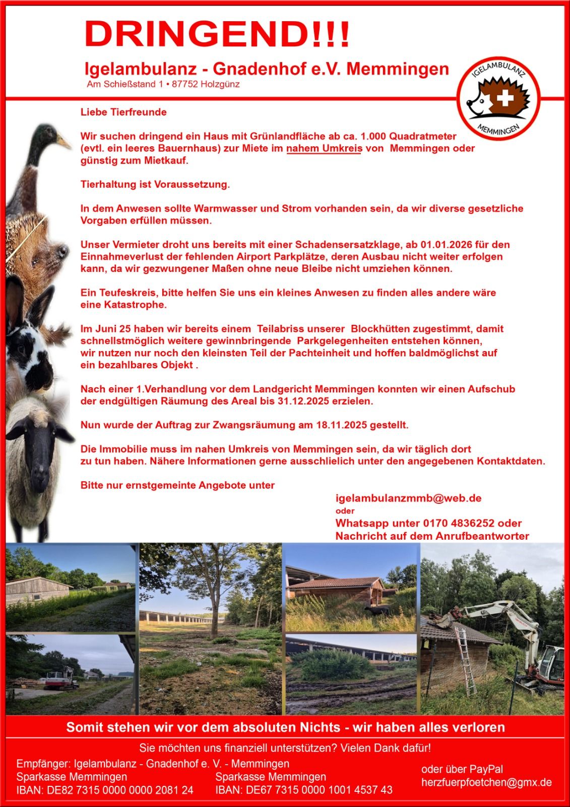 Empfänger: Igelambulanz -Gnadenhof e.V. Memmingen